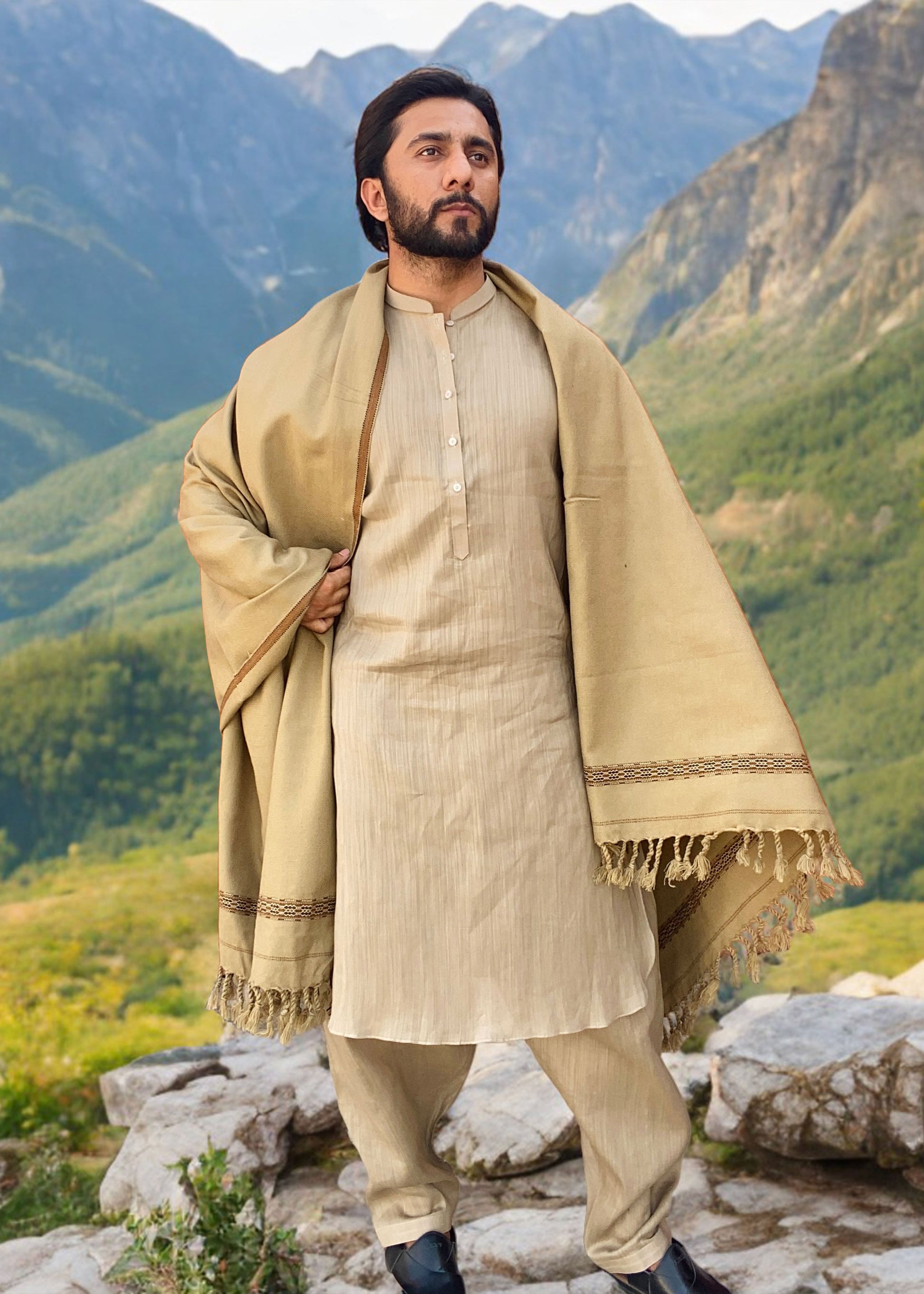 Distinguished Elegance: Pure Acrylic Woolen Peshawari Dhussa Shawl for Men (Medium)